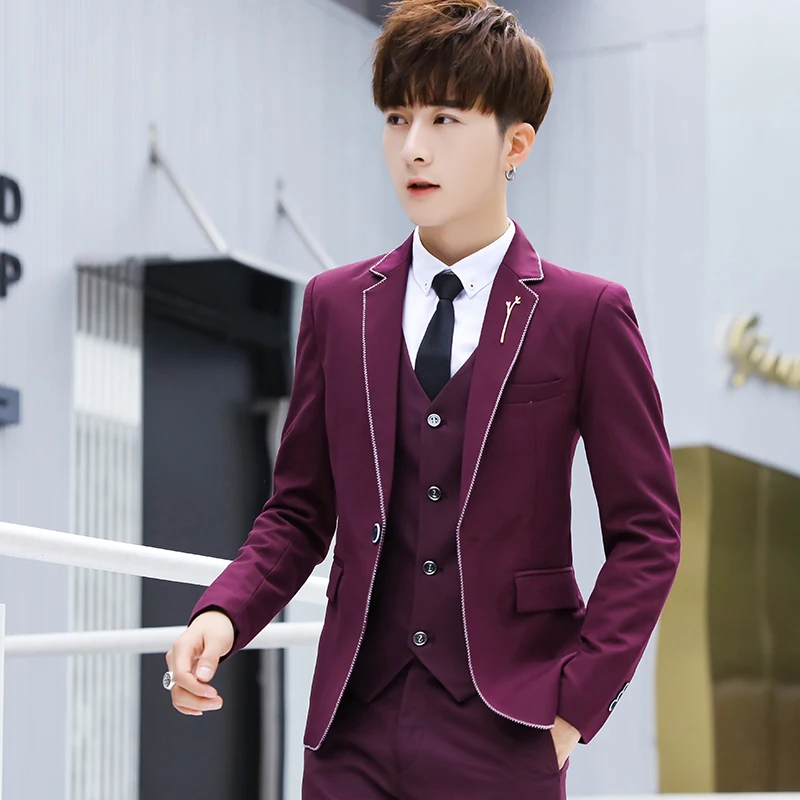Best Offer for 2020 the groom wedding suit men's cultivate one's morality dress British youth leisure three-piece