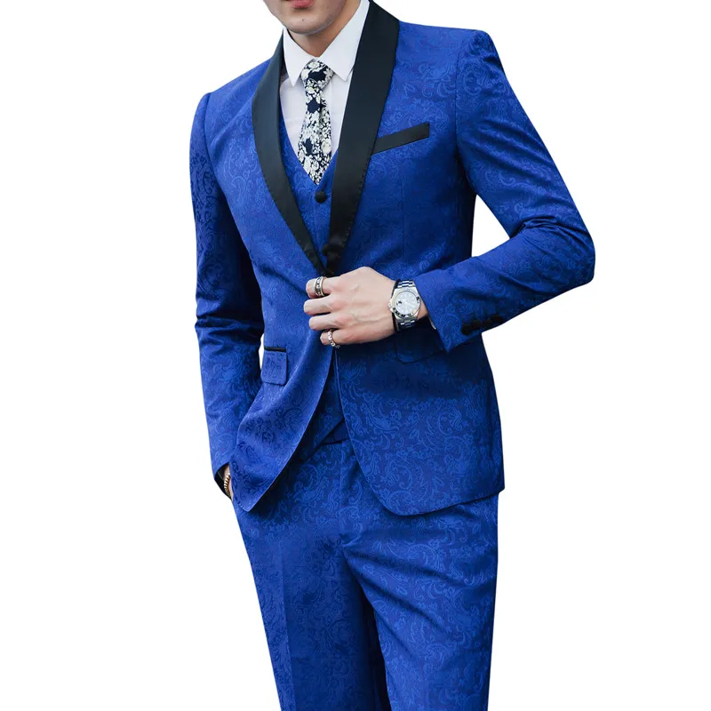 .image of Men's suit classic high-end business suit 3 piece set fashion print Slim groom wedding dress gentle